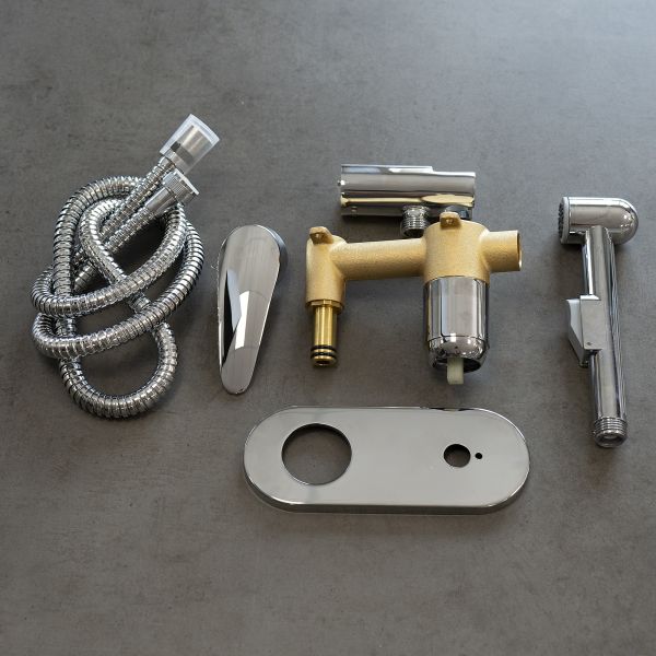 - Аксессуары в комплекте: лейка гигиенического душа с нажимным механизмом, шланг 1,2 м