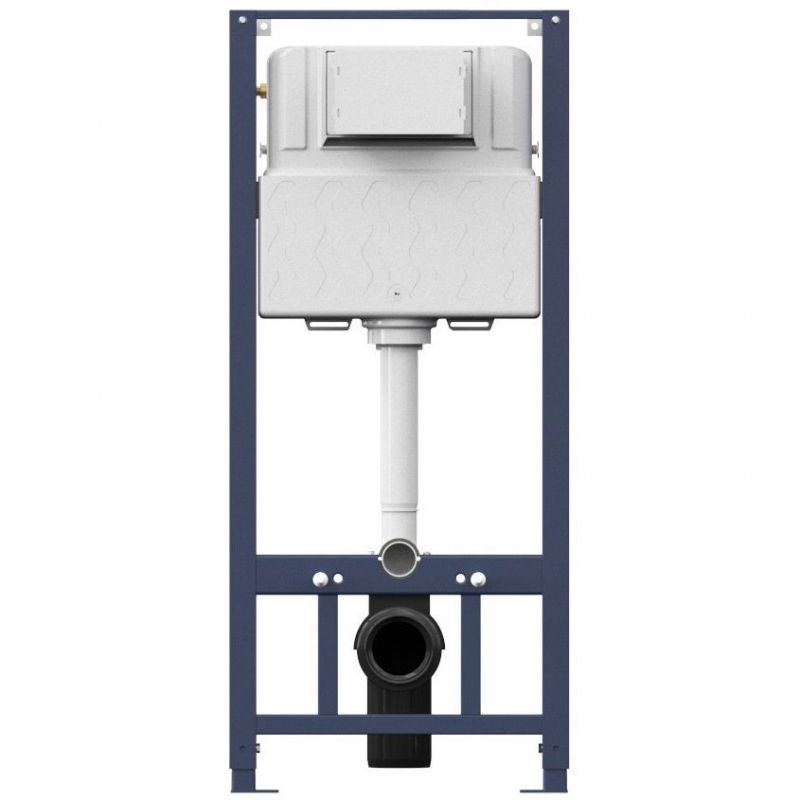 Максимально полная комплектация - все необходимые крепления, патрубки, звукоизолирующая прокладка в комплекте. Вертикальные ребра жесткости в конструкции рамы – дополнительная опора в месте давления керамики на стену. Благодаря им инсталляция более универсальная и подходит для унитазов любых размеров, включая унитазы с небольшой контактной поверхностью. Нет необходимости докупать дополнительные аксессуары для монтажа таких унитазов.Благодаря цельному стальному профилю 40*40 мм толщиной 2 мм инсталляция выдерживает нагрузку до 400 кг. Цельный бесшовный бачок из полиэтилена с защитой от конденсации. Комфортное использование благодаря заливному клапану с низким уровнем шума - менее 20 Дб.