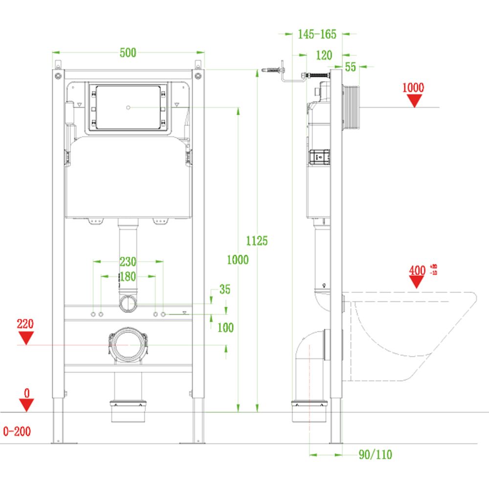 Инсталляция для унитаза VECONI FRAME600, 500x165x1125 купить
