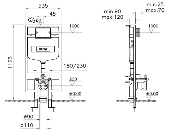 Инсталляция VitrA Rapid 768-5800-01 для подвесного унитазаСкрытая сист.смыва на 3/6л., тонкая - 8 cm