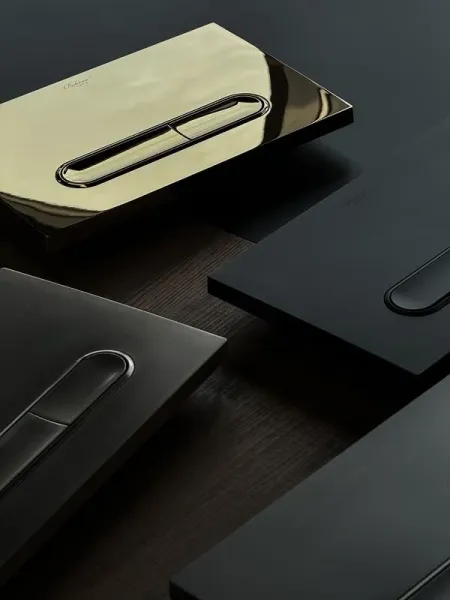 Новая клавиша смыва совместима с инсталляциями Geberit 300 серии, изготовлена из пластика, покрытая технологией PVD