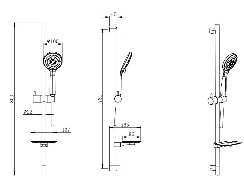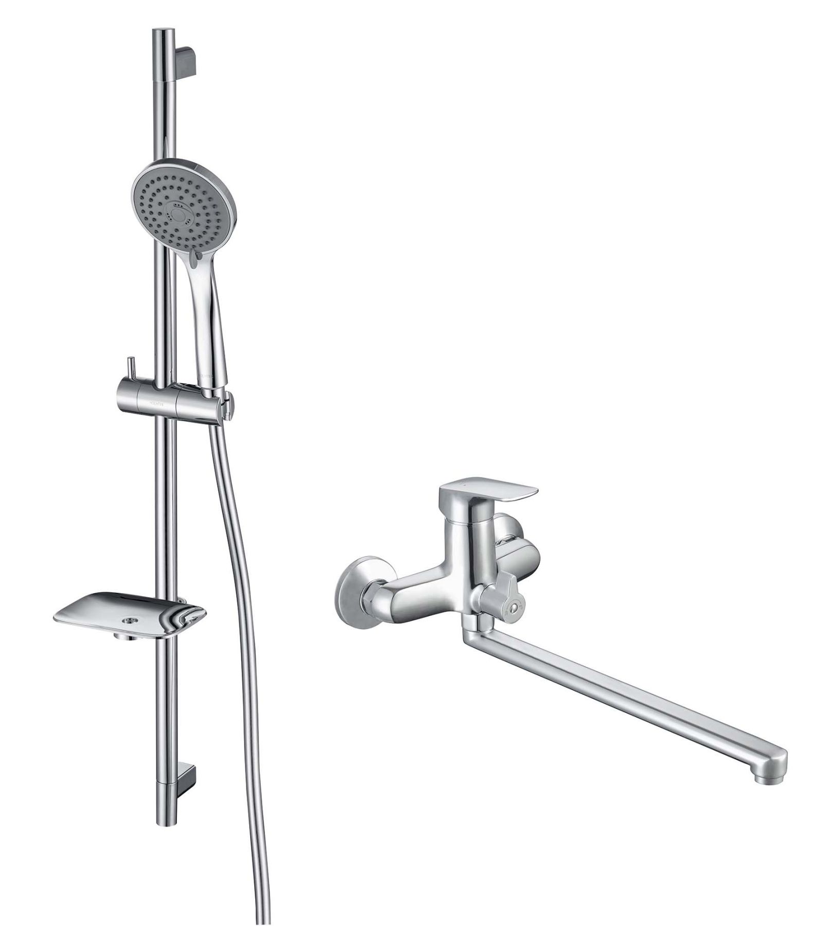 • Душевой гарнитур: стойка для душа с мыльницей, лейка, шланг