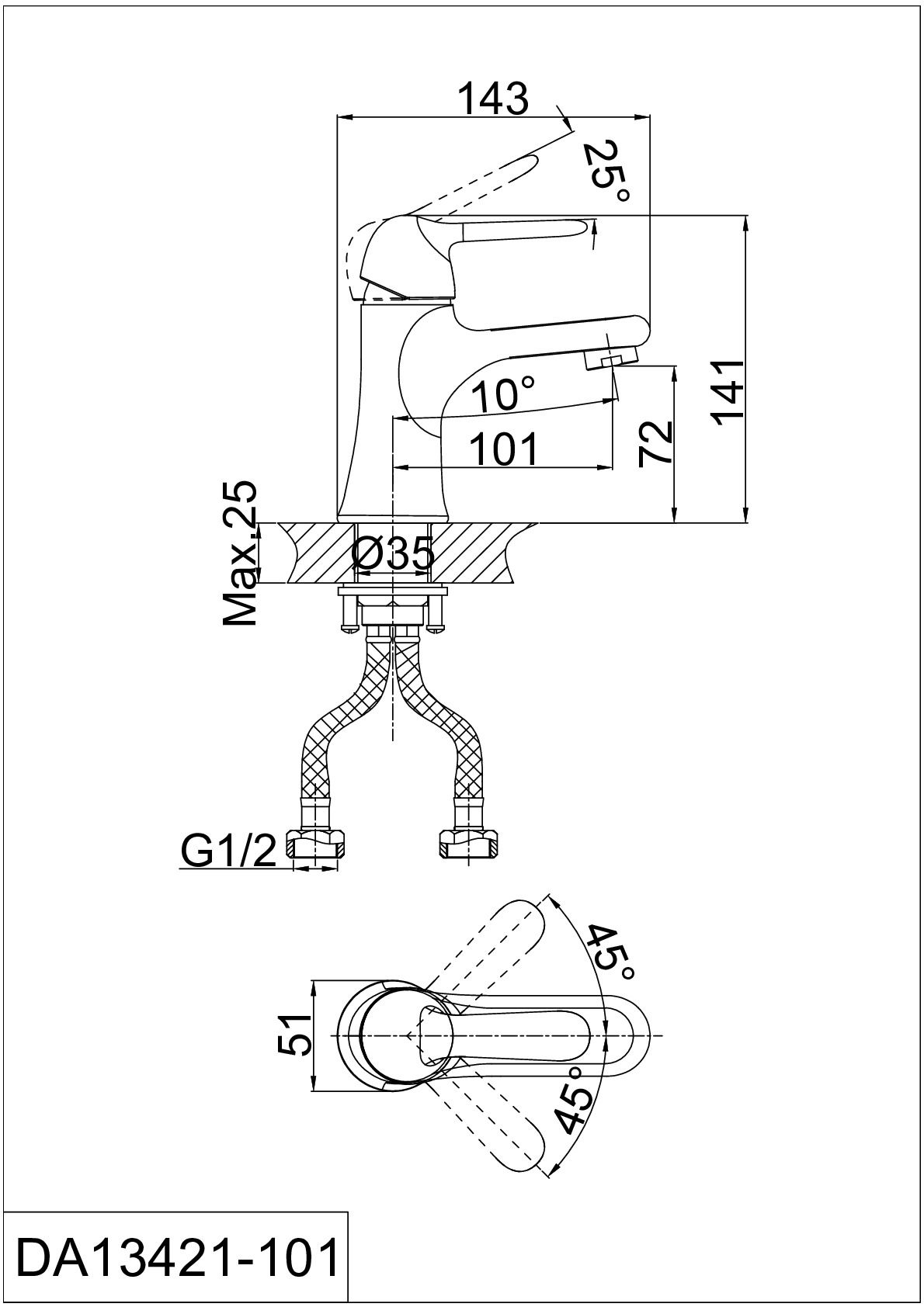 - Гибкая подводка 40 см идёт в комплекте для быстрой установки;