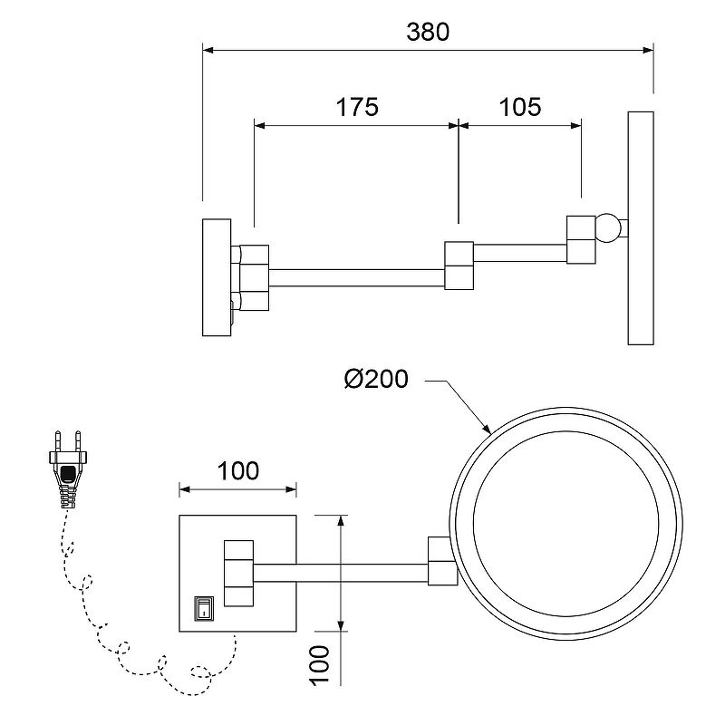 Диаметр зеркала 200мм.
