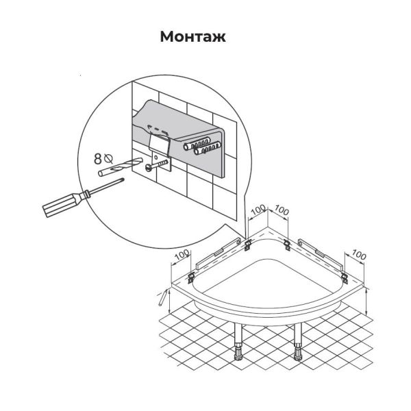 Данный комплект предназначен для дополнительного крепления поддона к стенам, который установлен на опору.
