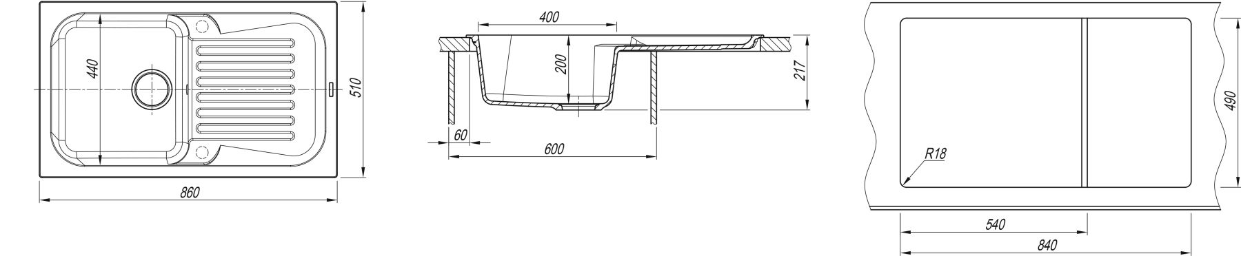- Отверстия под смеситель:нет