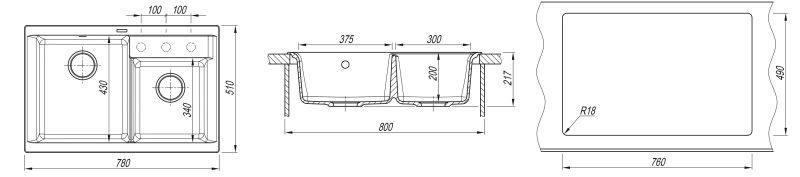 - Отверстия под смеситель:нет
