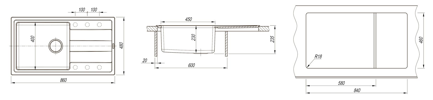 - Отверстия под смеситель:нет