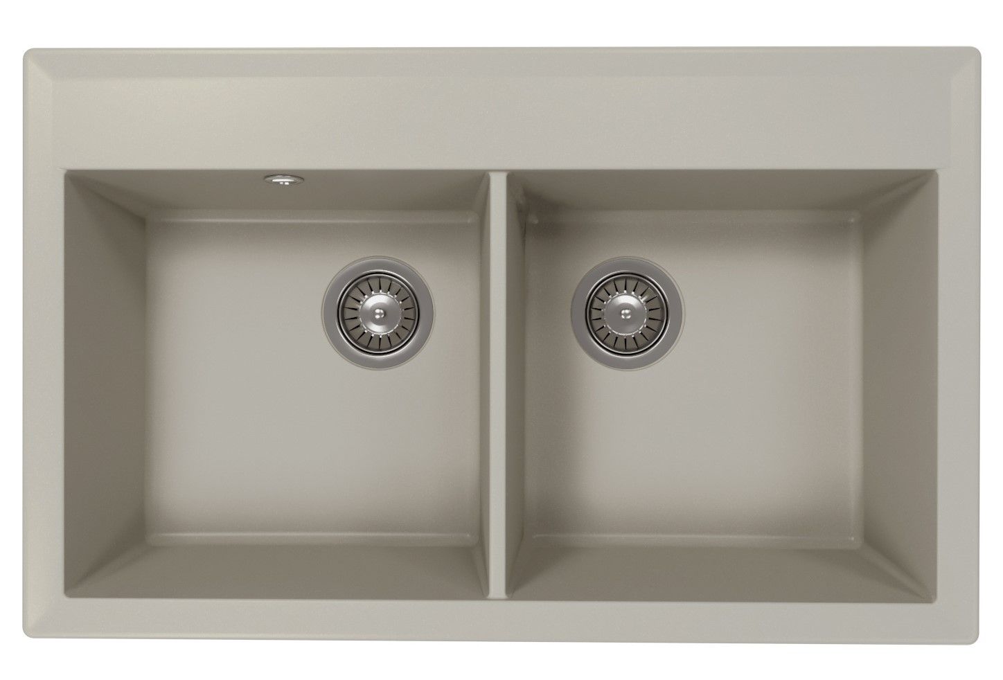 - Прямоугольная мойка с двумя большими чашами для кухонного шкафа 80 см