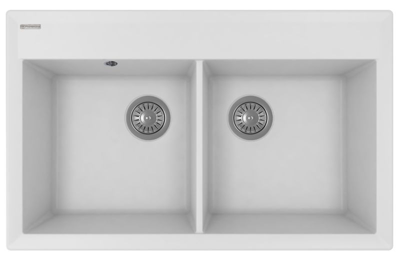 - Прямоугольная мойка с двумя большими чашами для кухонного шкафа 80 см