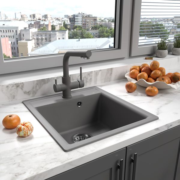 Модель представлена в 6 трендовых цветах: антрацит, грей, шампань, серый шёлк, жасмин, бежевый, что дает возможность подобрать мойку в общей стилистике кухни.Основные особенности: