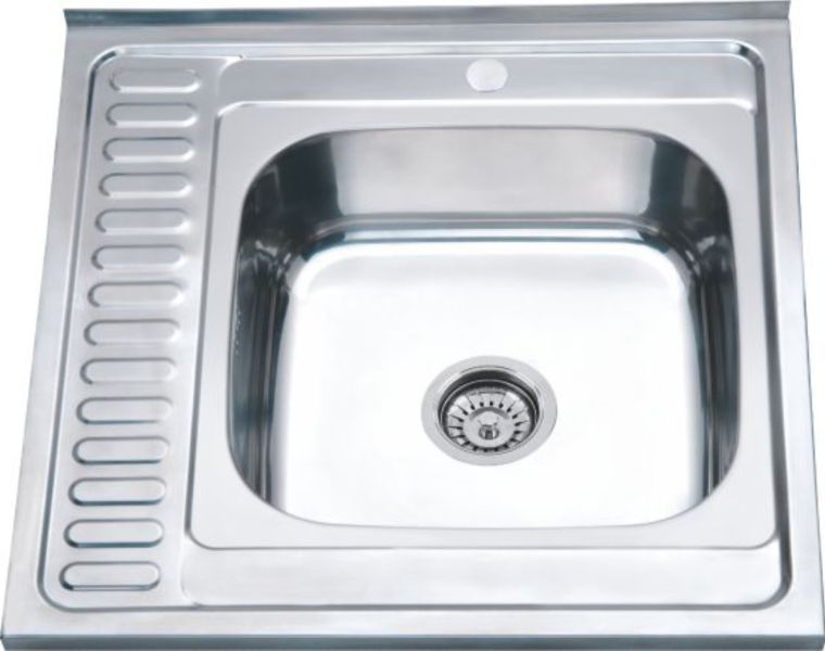 Кухонная мойка глянцевая правая, толщина 0,6мм, размер 600x600мм, глубина чаши 160мм материал нержавейка, в комплекте евро сифон