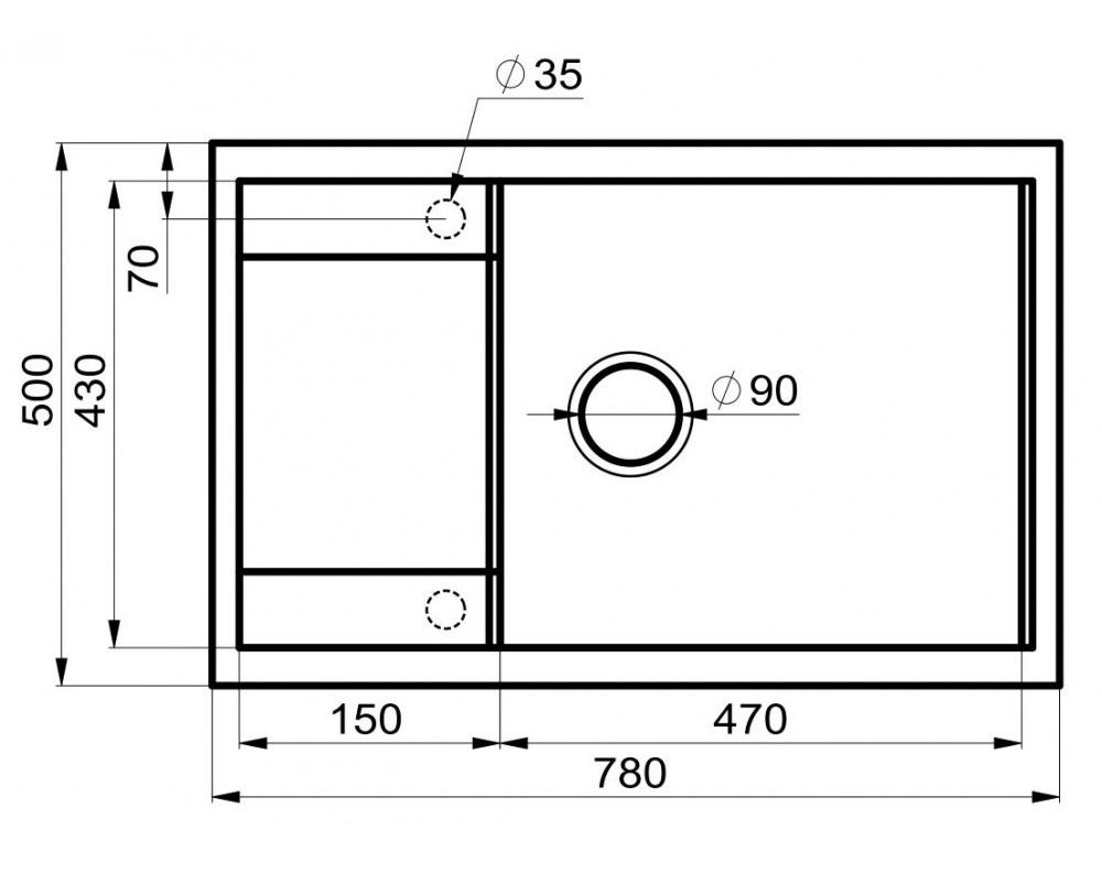 - Отверстия под смеситель:нет
