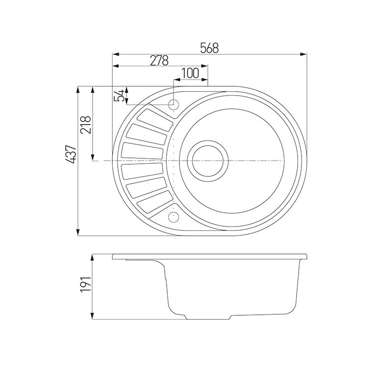 - Отверстия под смеситель:1