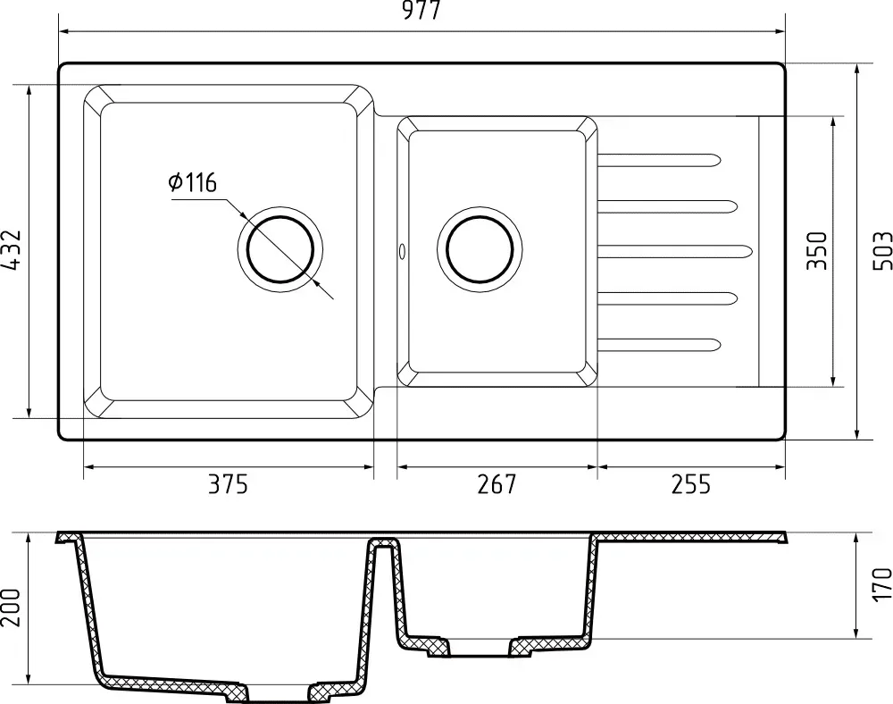 Комплектация: сливная арматура с корзинчатым вентилем (Ø 3.5""/90 мм), тех.паспорт, гаратийный талон."