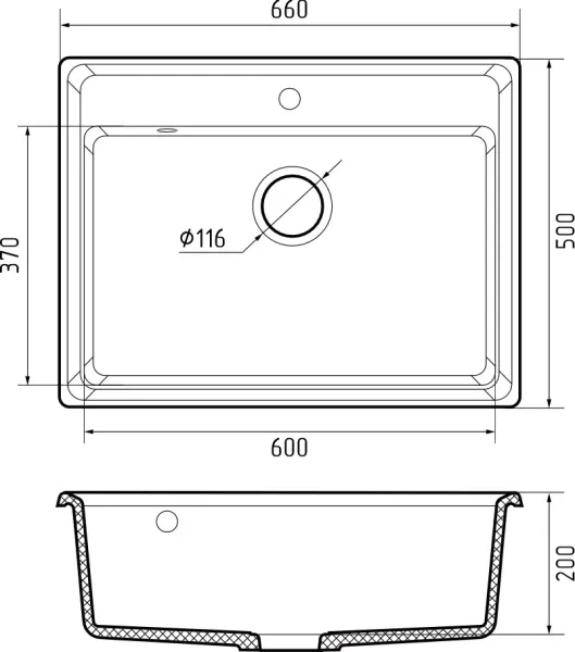 Размер чаши: 600 х 370 х 200 мм