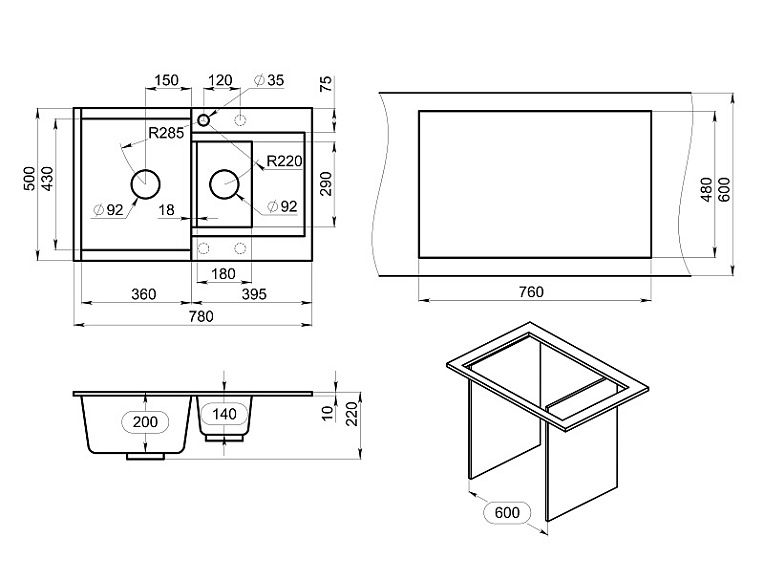 Мойка кухонная Granula 7808, БАЗАЛЬТ Мойка кухонная Granula 7808, БАЗАЛЬТ Казань 12210.00 16500.00 Granula