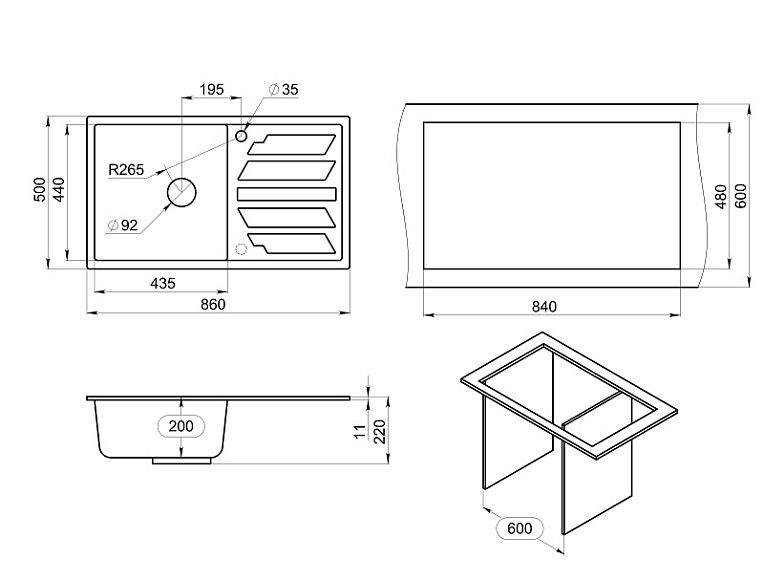 - Отверстия под смеситель:1