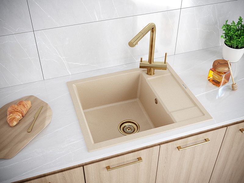 Материал мойки устойчив к механическим повреждениям, а также выдерживает температуру до 180 градусов.Однородная структура цвета