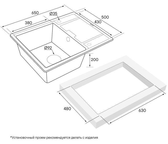 Компактный вариант мойки с крылом идеален для ограниченного кухонного пространства.Максимальный объём чаши