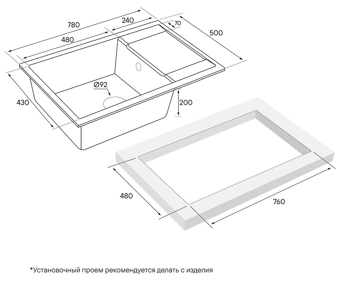 Материал мойки устойчив к механическим повреждениям, а также выдерживает температуру до 180 градусов.Однородная структура цвета