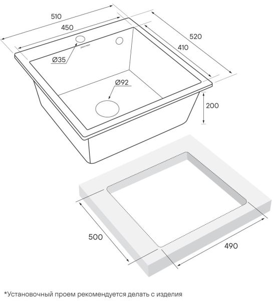 Материал мойки не нужно герметизировать, и, поскольку он не пористый, то он максимально устойчив к окрашиванию.Компактный размер