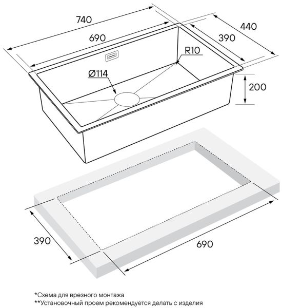 - Отверстия под смеситель:нет