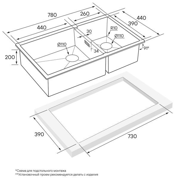 - Отверстия под смеситель:нет