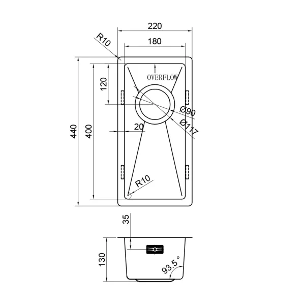 ШxВxГ: 220x440x130 мм