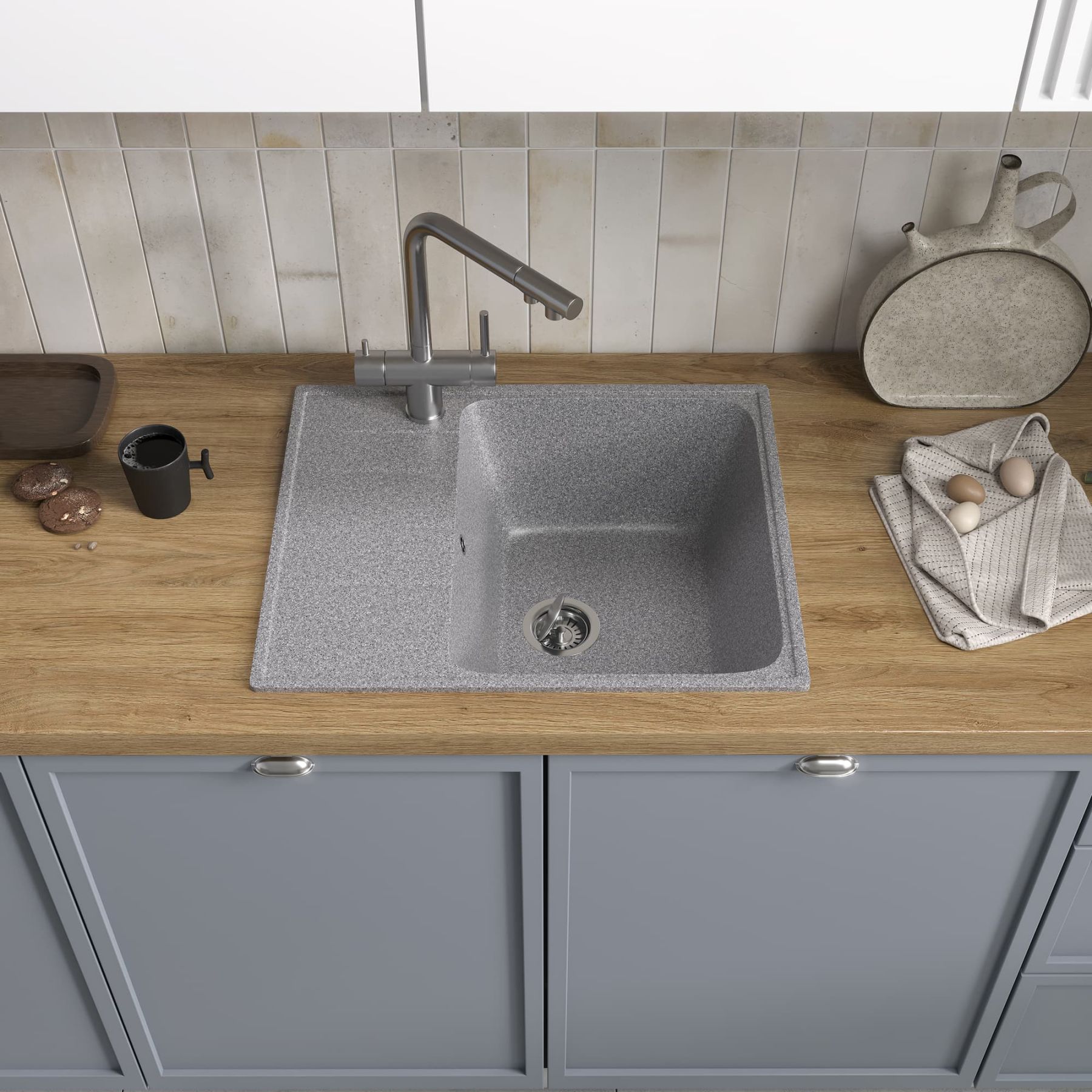 Мойка кухонная Reflexion Plato 57-GR RX1457GR гравий купить