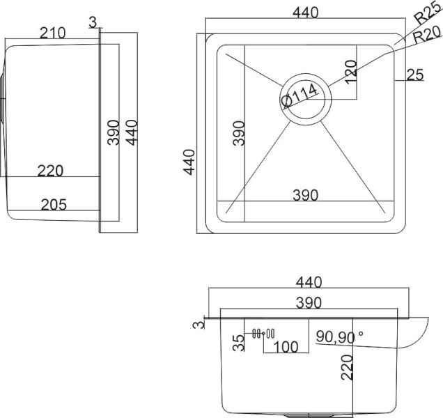 - Отверстия под смеситель:нет