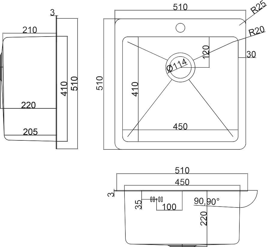 - Отверстия под смеситель:1