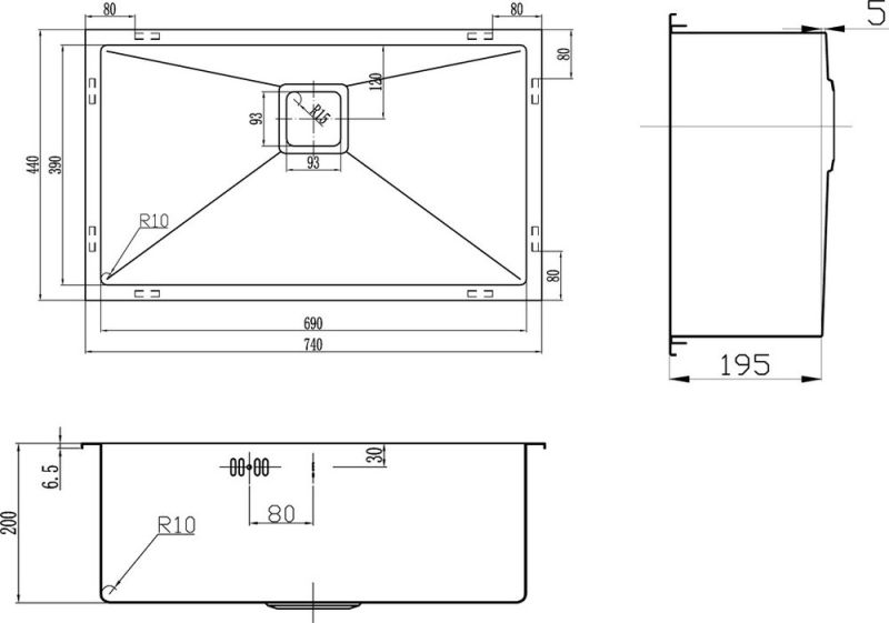 - Отверстия под смеситель:нет