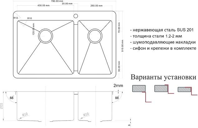 Мойка кухонная Zorg Light GRAFIT ZL R 780-2-510-L GRAFIT купить