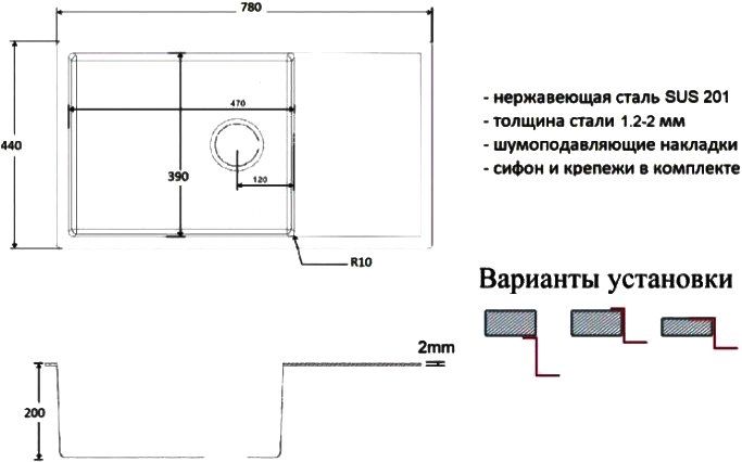 Мойки кухонные серии Zorg производятся из высококачественной легированной нержавеющей стали марки SUS 304 (толщина стали 1 мм). Характерными особенностями кухонных моек данной серии являются прямые углы моечной чаши и четкие линии поверхности мойки, которые несомненно придутся по вкусу обладателям кухни в стиле хай-тек. Матовая поверхность мойки достигается благодаря применению брашинга (шлифование специальными щётками). Встроенная система крепления для аксессуаров позволит использовать всевозможные аксессуары Zorg (разделочные доски, поддоны и коландеры), превращая поверхность мойки в рабочую зону и обеспечивая дополнительное пространство на кухне.
