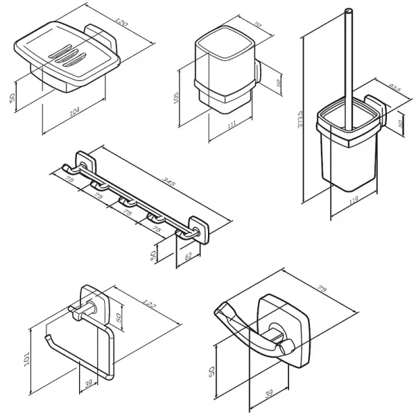 Комплексное оснащение: Комплект аксессуаров для ванной включает все необходимое для комфортного использования.