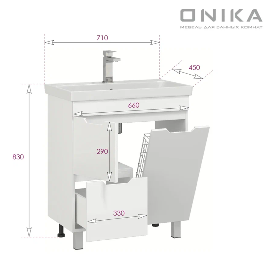 Напольная тумба Onika Айленд 107062 с корзиной 70см белый купить