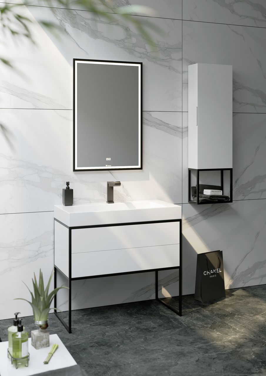 Напольная тумба под раковину Clarberg Logic 70 LOG0107N с двумя ящиками. Главная особенность коллекции - это применение алюминиевого анодированного профиля в чёрном цвете.Технические данные:Цвет: белый.