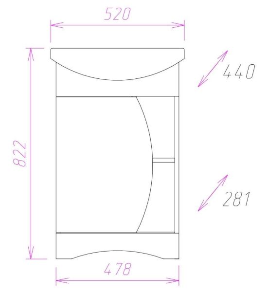 Размеры тумбы без учета раковины: 48х28х78 см.