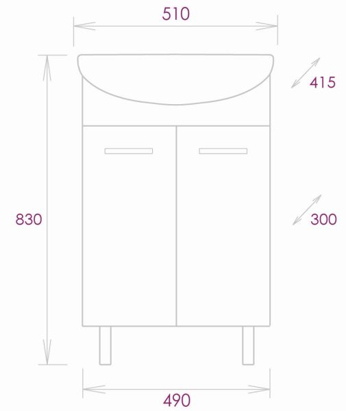 Размеры тумбы без учета раковины и ножек: 49х30х68см.