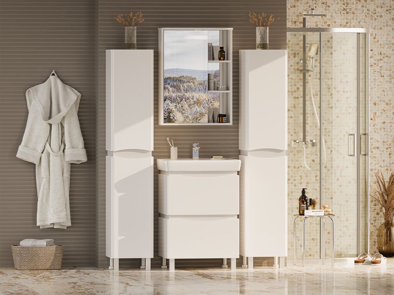 Шкаф-пенал для ванной комнаты – это стильное решение, которое гармонично вписывается в современный интерьер. Его элегантные линии и аккуратные формы создают атмосферу чистоты и порядка, что особенно важно в таком интимном пространстве. Изготовленный из качественных влагостойких материалов, этот шкаф обеспечивает долговечность и надежность, даже в условиях повышенной влажности.Основное преимущество шкаф-пенала заключается в его вместительности. Удобные полки и ящики позволяют организовать пространство и разместить все необходимое: от косметики до бытовых принадлежностей. Каждая деталь продумана для удобства использования, что делает утренние и вечерние ритуалы более приятными.Будь то строгий минимализм или уютный скандинавский стиль, шкаф-пенал станет акцентом, который подчеркивает индивидуальность вашего пространства. Не упустите возможность преобразить свою ванную комнату, добавив в нее этот элегантный и практичный элемент.