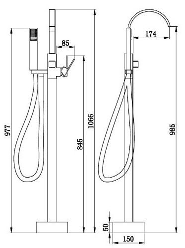 Смеситель RESIA для отдельностоящей ванны BOCH MANN BM7775Картридж SCCДушевая штанга: нержавеющая стальДушевой шланг 1,5 м