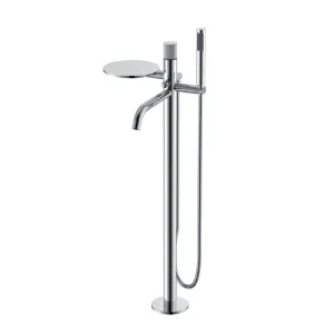 В комплекте поставки: смеситель для ванны, ручной душ, душевой шланг, держатель ручного душа, полочка, комплект креплений.