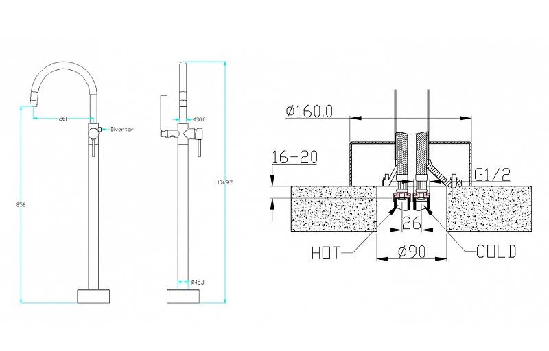Напольный смеситель для ванны Boheme Uno 469-B чёрный купить