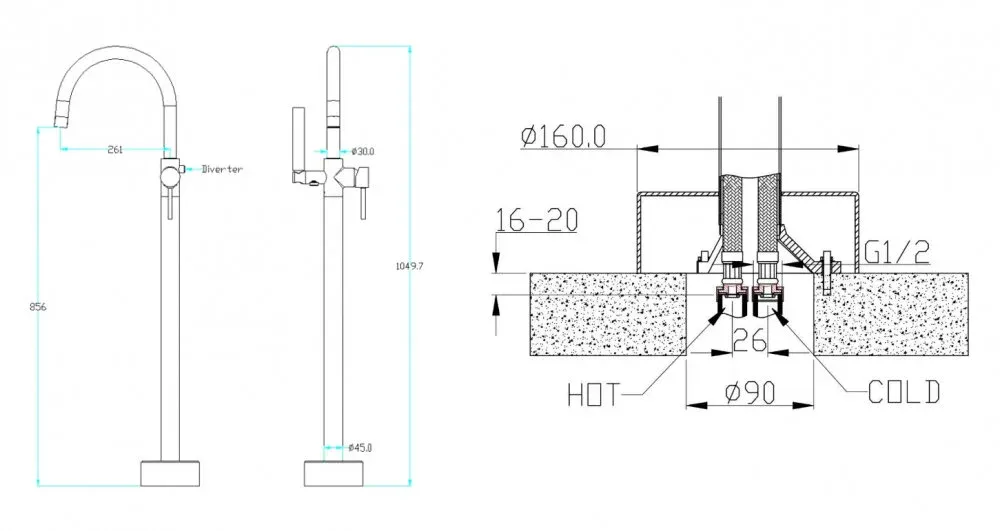 Напольный смеситель для ванны Boheme Uno 469-BR бронза купить