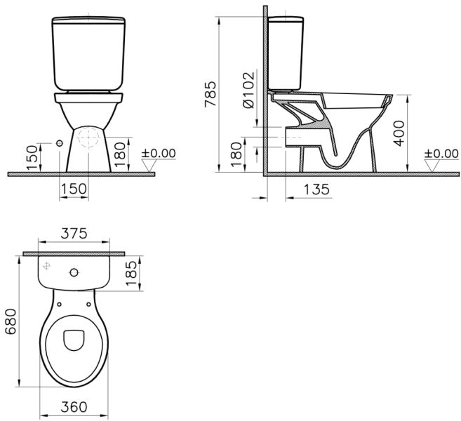 - Укороченный унитаз:нет