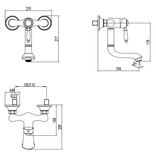 - Высота смесителя:21.5