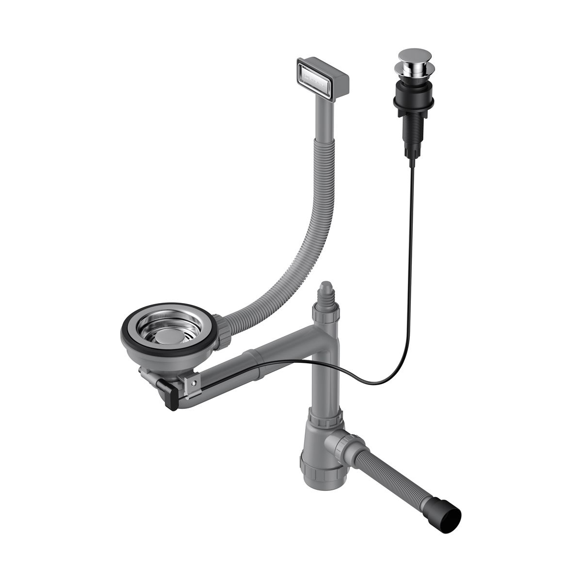 Арматура для одночашевых моек с прямоугольным переливом, декоративной решеткой и клапаном-автомат. Подходит для моек из серий TAKI, AKISAME, OMI, TADZAVA И KATA.