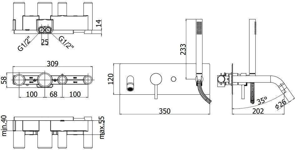 Смеситель для ванны встраиваемый на 2 выхода, накладка из нерж стали 350х120мм, душ гарнитур MASTER из металла, девиатор-кнопка, ХромСмеситель для ванны с душем Paffoni Light LIG001CR (с внутренней частью) предназначен для ванны с душем. Своим лаконичным дизайном и цветом он внесет в интерьер помещения стильный акцент, подчеркнув его своеобразие. Он произведен из надежного материала латунь/Нержавеющая сталь, который не подвержен коррозии, а потому прослужит верой и правдой. Изделие является исключительным примером продуманной конструкции. Управление в смесителе предусмотрено однорычажное, что порадует любителей такого типа смесителей. Высокую работоспособность и долговечность смесителю гарантирует керамический картридж, безусловным плюсом которого является продуманная конструкция - залог четкой работы в течение длительного времени. Не напрасно гарантия на смеситель – 5 лет, в течение которого компания Paffoni заверяет в его бесперебойной работе. Форма излива в смесителе - традиционная, а тип - фиксированный. При покупке учтите, что подводка у смесителя жесткая, что требуется знать для его монтажа.