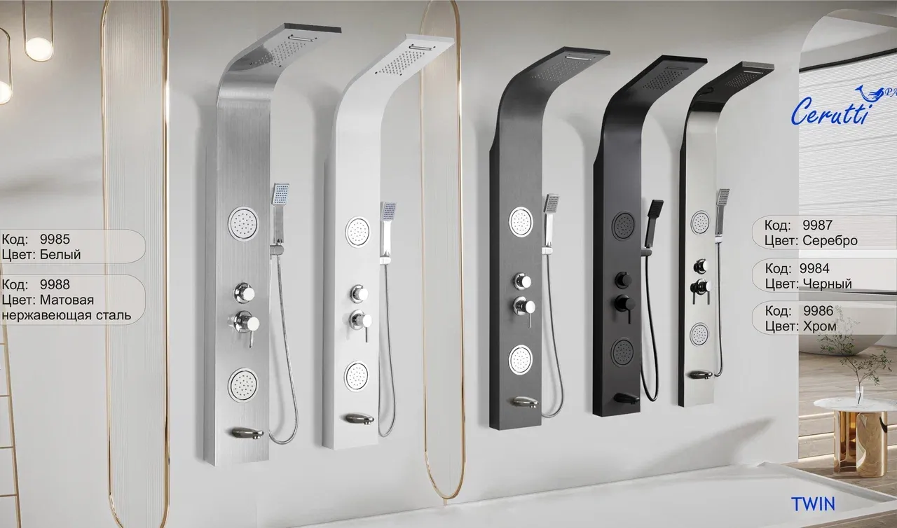 Комфорт ванной комнаты формируется современными элементами обустройства помещения. Поэтому для создания уютной атмосферы необходимо внимательно отнестись к выбору сантехнического оборудования. Сделать вашу ванную комнату не только эргономичной, но и функциональной, поможет душевая панель.Душевые панели становятся все более популярными, так как предлагают роскошные SPA процедуры в комфорте вашей собственной ванной комнаты. Эти изящные и стильные устройства обладают целым рядом функций, которые призваны улучшить ваши впечатления от принятия душа.Также душевые панели являются отличным решением для помещений любых размеров: они компактные, функциональные, удобные в управлении и эксплуатации. Душевые панели не требуют трудоёмкого ухода и являются отличной альтернативой классическим смесителям с ручной лейкой, душевым стойкам или кабины с гидромассажем.Трендовые душевые панели бренда Ceruttispa отличаются высоким качеством, современным дизайном, многофункциональностью, надежностью и долговечностью. Они будут прекрасно смотреться в любом интерьере, а качественный материал исполнения - нержавеющая сталь - прослужит долго, сохранив свои эстетические характеристики. Удобная и многофункциональная душевая панель TWIN W предназначена для установки внутри душевых уголков, ограждений, а также совместно с ванной.Конструкция панели включает в себя верхний и ручной душ, а также держатель для аксессуаров. Излив оснащен аэратором, который снижает расход воды легко очищается.Внимание! Производитель оставляет за собой право вносить изменения в конструкцию и комплектацию моделей без предварительного уведомления!Особенности: